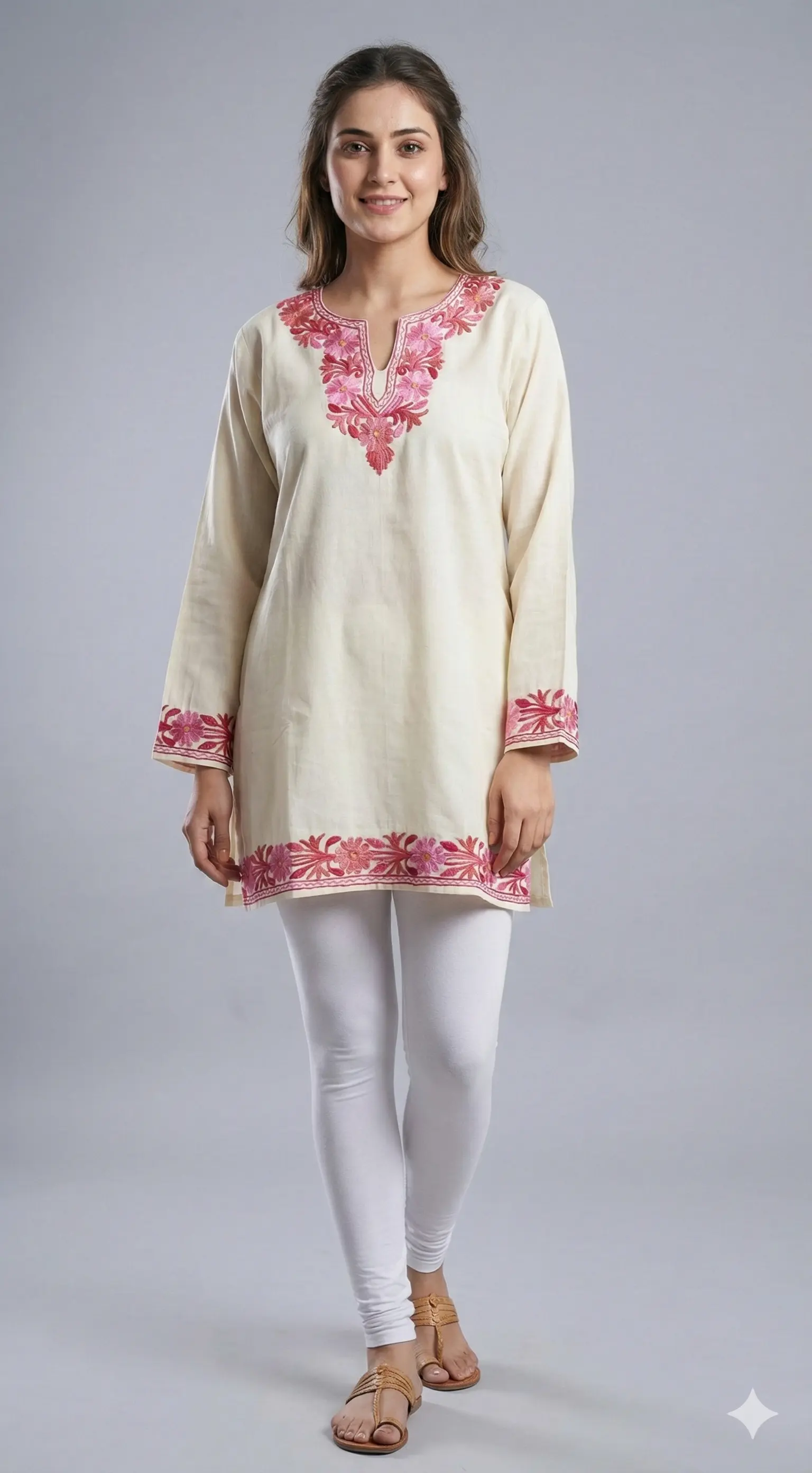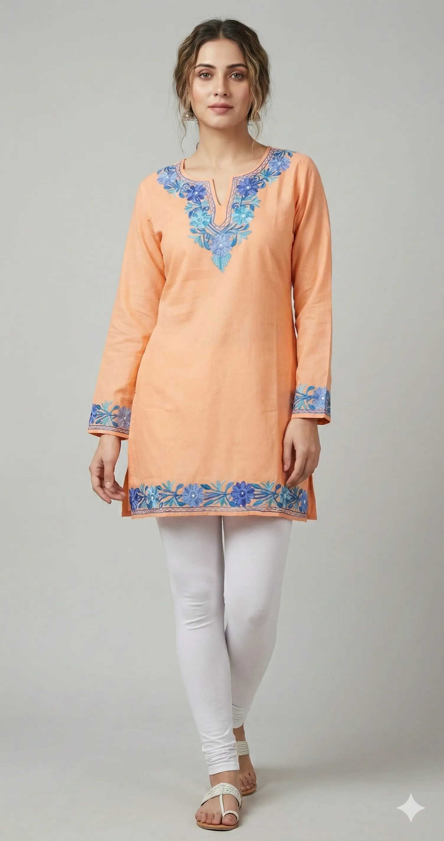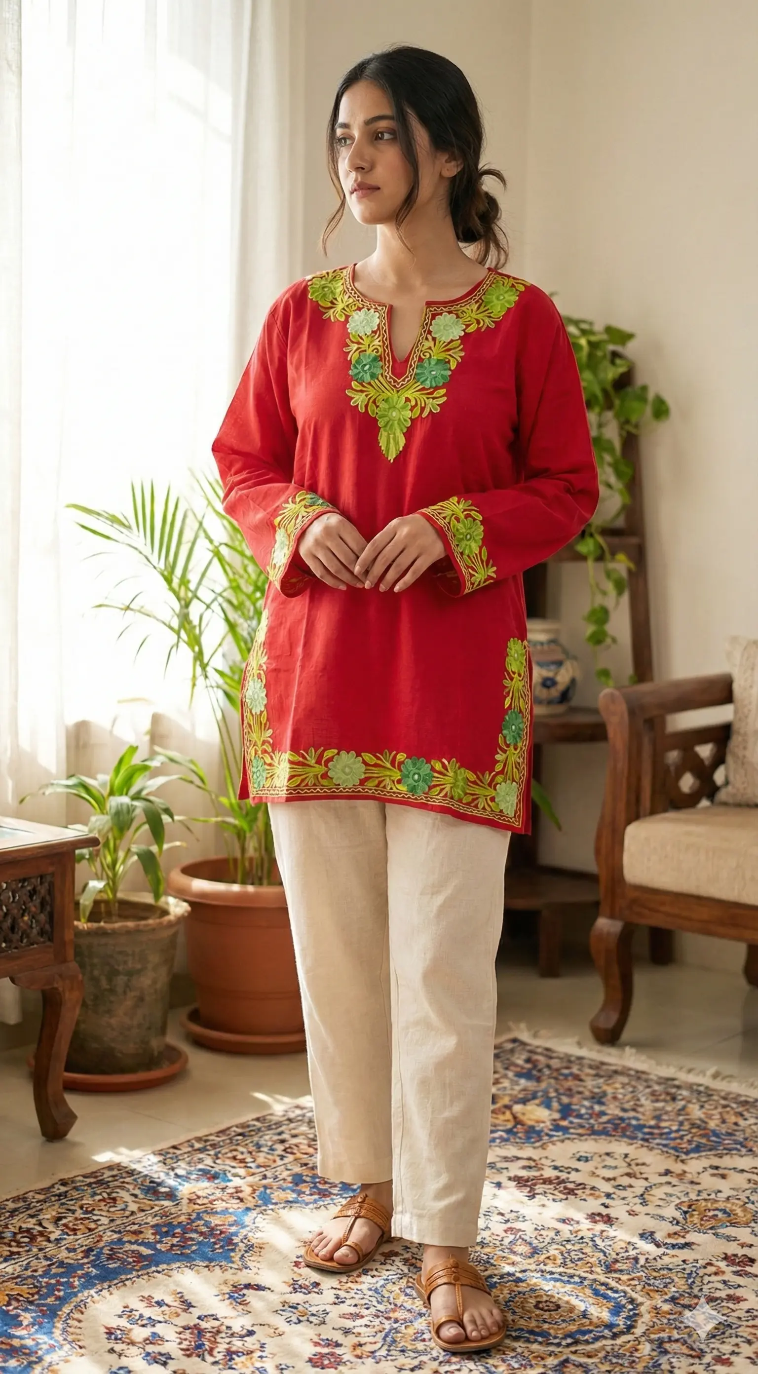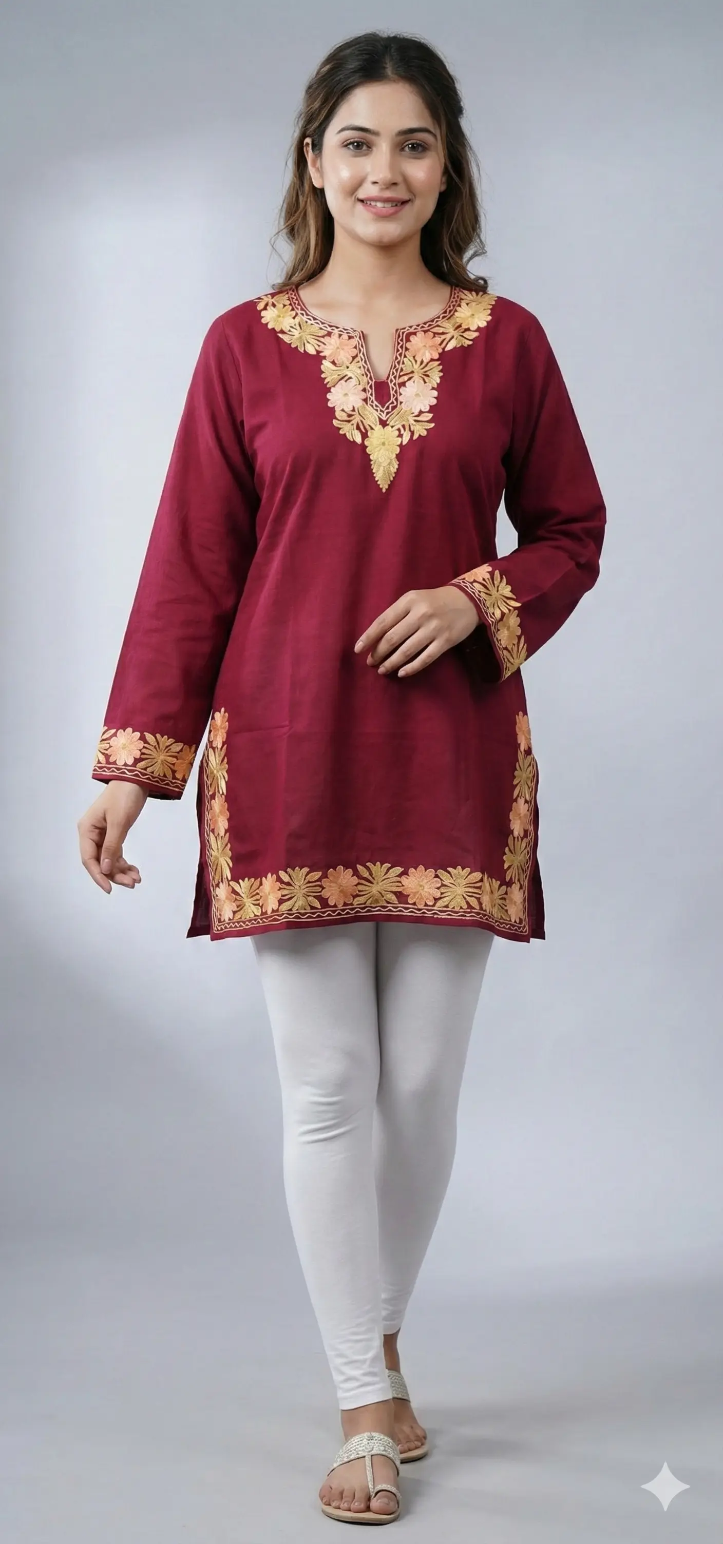 Stay effortlessly chic this season with our Short Summer Cool Kashmiri Kurti which is made from lightweight, breathable fabric that is perfect for warm days and relaxed outings. Add a touch od tradition to your modern style with this beautifully embroidered kashmiri kurti.